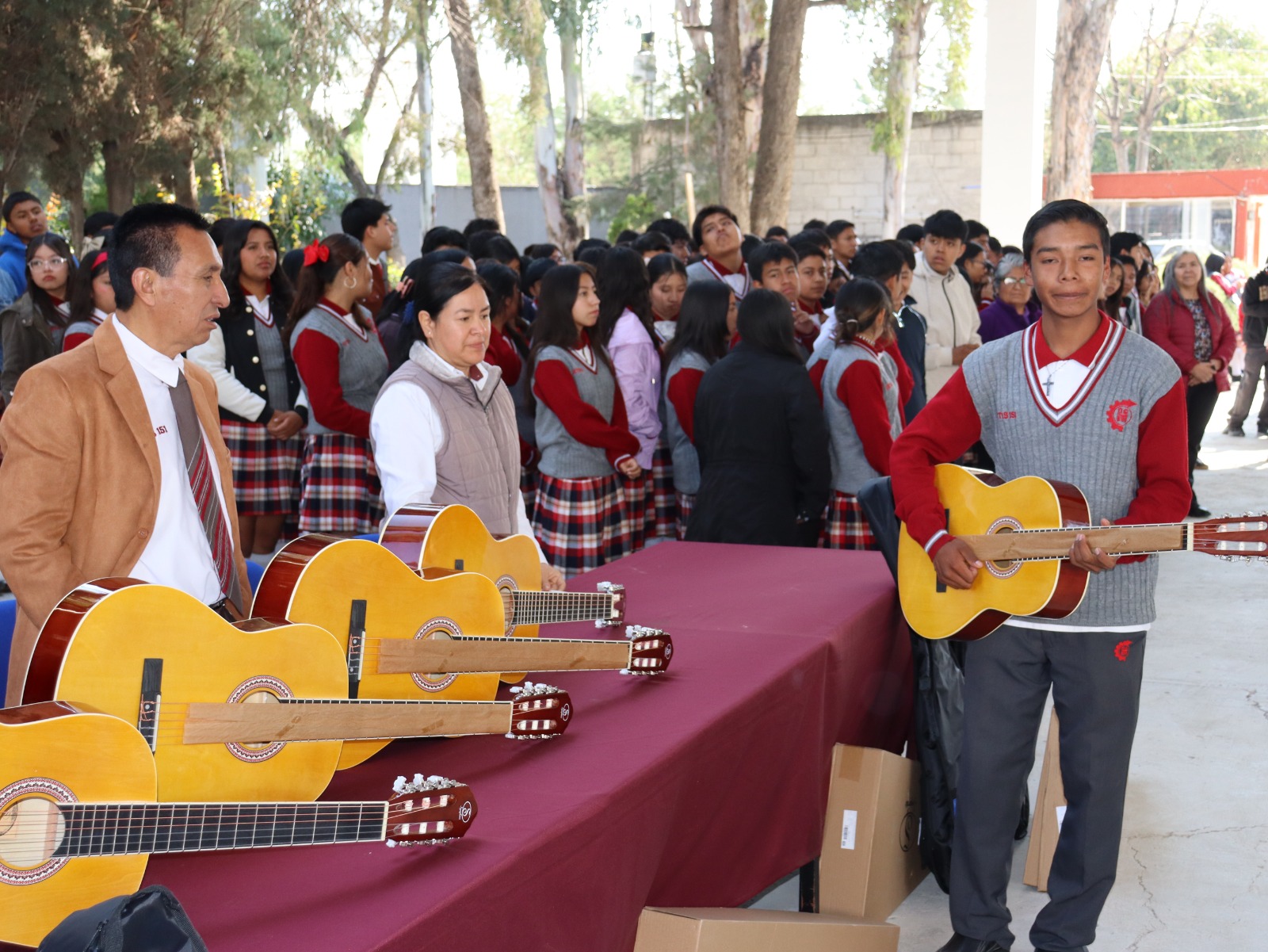 La entrega se realizó frente a la comunidad estudiantil y docentes, quienes presenciaron este importante momento para el desarrollo artístico del plantel. Los integrantes del club de rondalla recibieron los instrumentos con entusiasmo y agradecimiento.